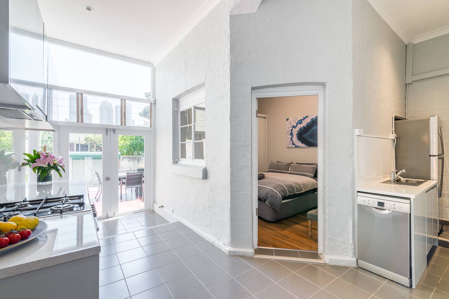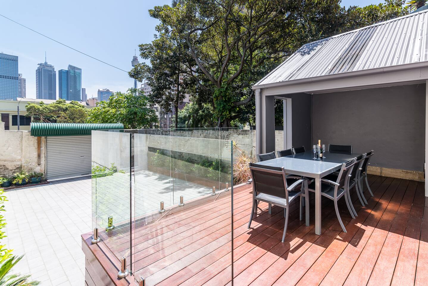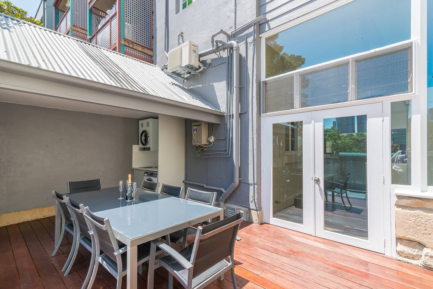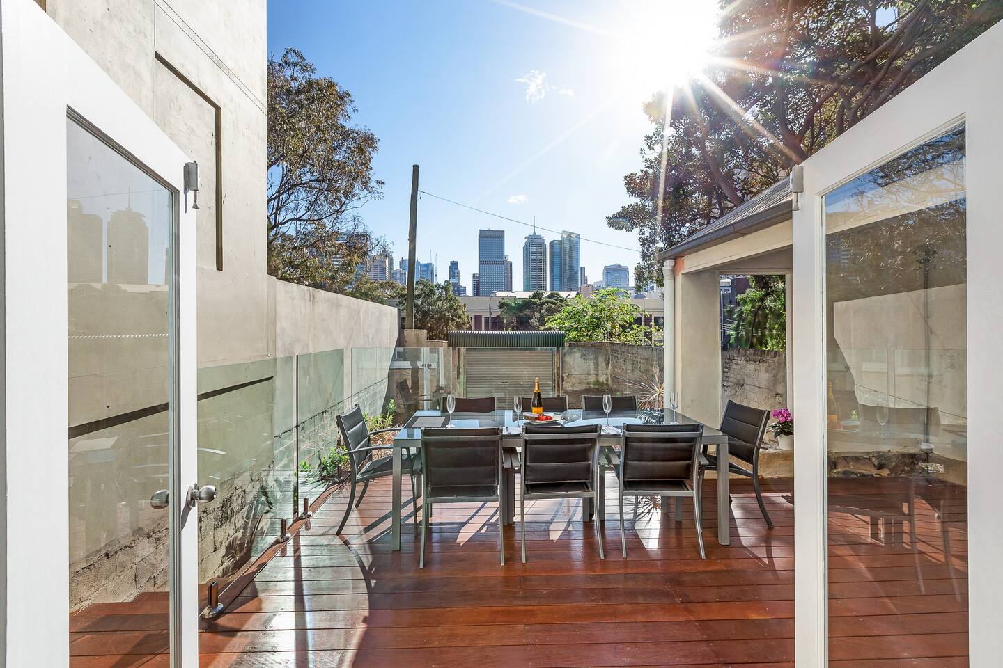 This 2 bedroom ground floor Victorian terrace has everything you need for your stay in Sydney. Ideally suited for singles and couples. The separately spaced bedrooms, lounge, indoor and outdoor dining areas comfortably accommodates 4 adults. Everything is brand new. Recently renovated to the highest standards, ensuring you can enjoy the Victorian architecture with all modern conveniences. Occupying the entire ground floor of this oversized Victorian terrace (151 sq m internal/ 208 sq m total) enables you to enjoy: • Formal lounge, with 3 m ceilings, polished floors & designer furniture • Open plan kitchen and dining area, with all amenities • Enormous 25 sq m timbered terrace balcony, with laundry, overlooking the city • 2 sizable bedrooms, one with a King and the other with Queen sized premium beds, each with substantial built in wardrobes • Central bathroom and separate toilet • Landscaped backyard, with room for up to 2 cars and remote control access • High speed Wi-Fi with unlimited downloads throughout entire terrace • Streaming video via Apple TV with Netflix, Stan and You Tube- latest television and movies. The train stations that either connects you to the airport (Museum station via the city loop) or takes you to Bondi (Kings Cross station) are just a stroll down the road. We love our Darlinghurst terrace, situated in the heart of Sydney. We hope you love it too!