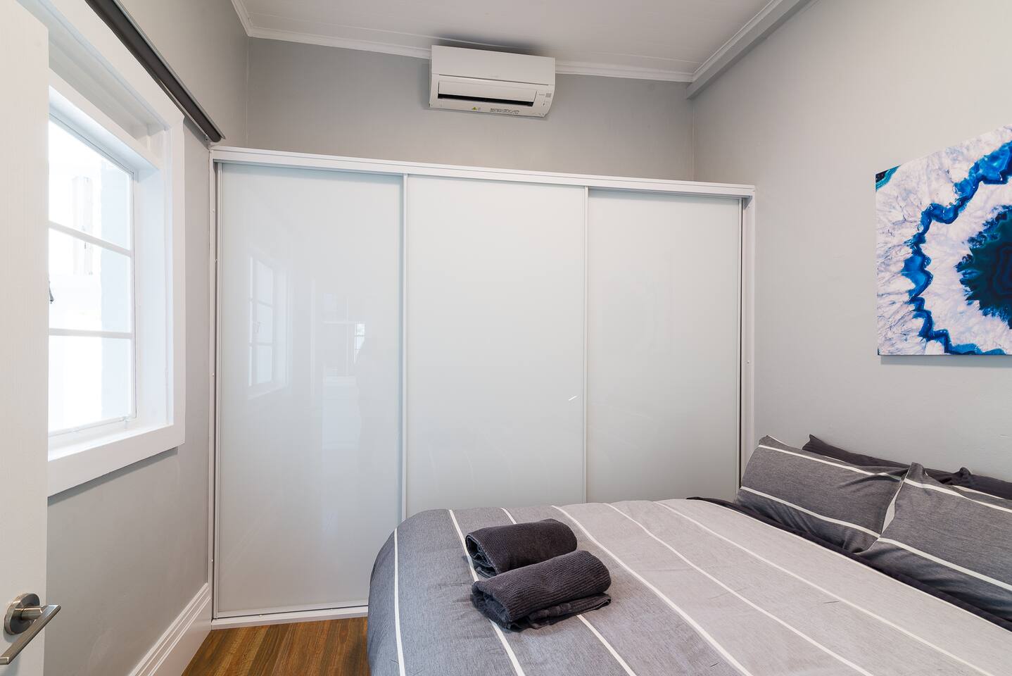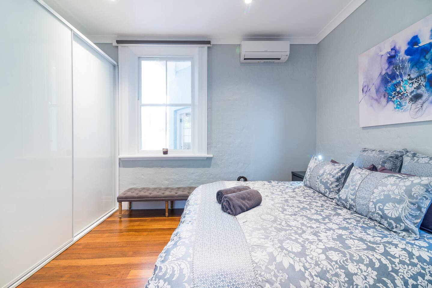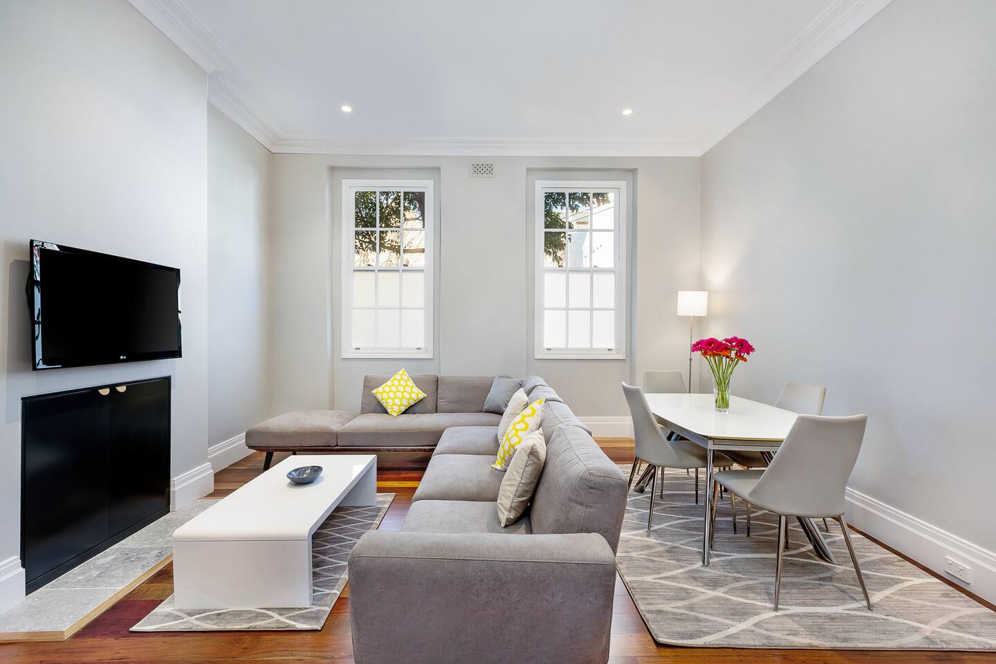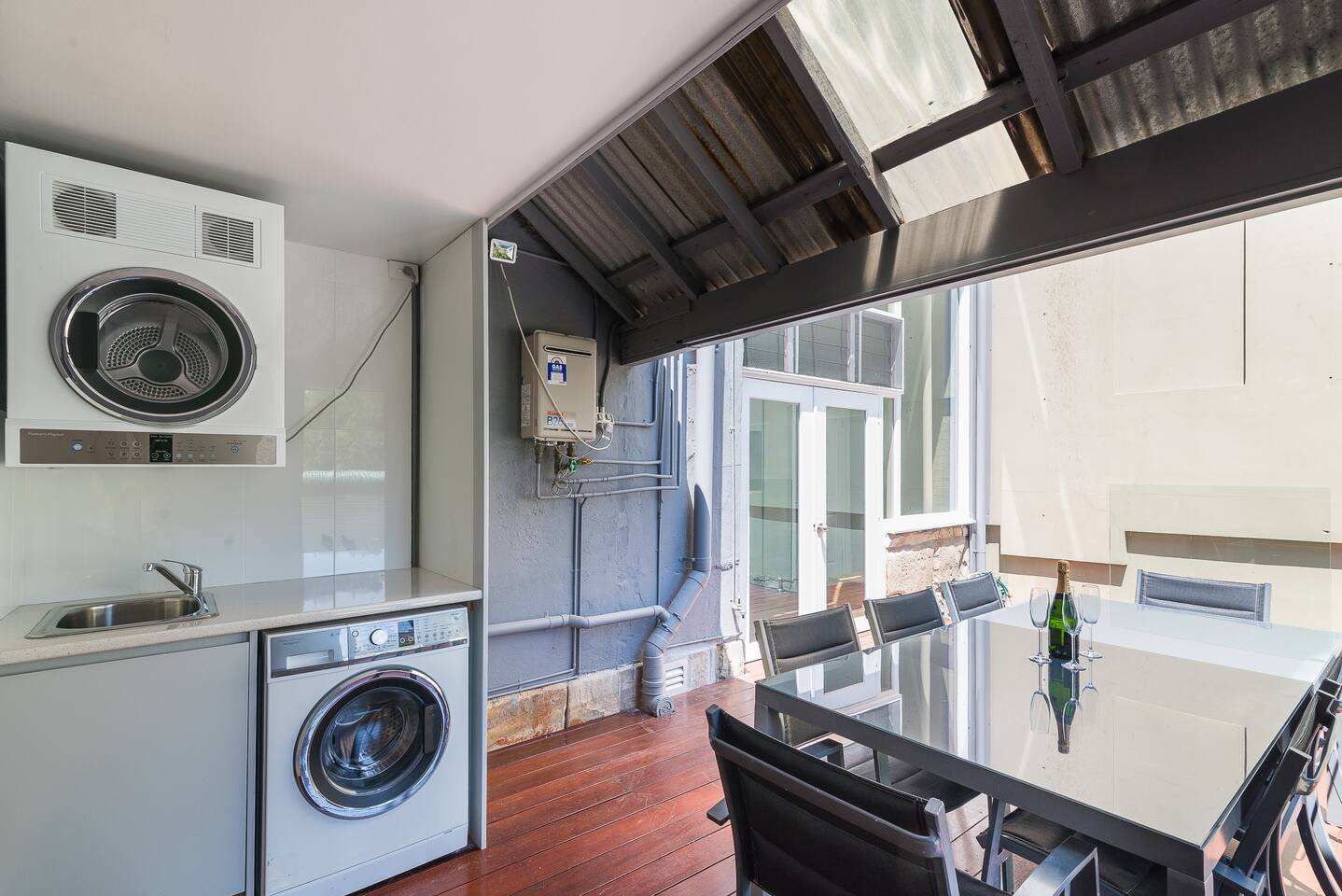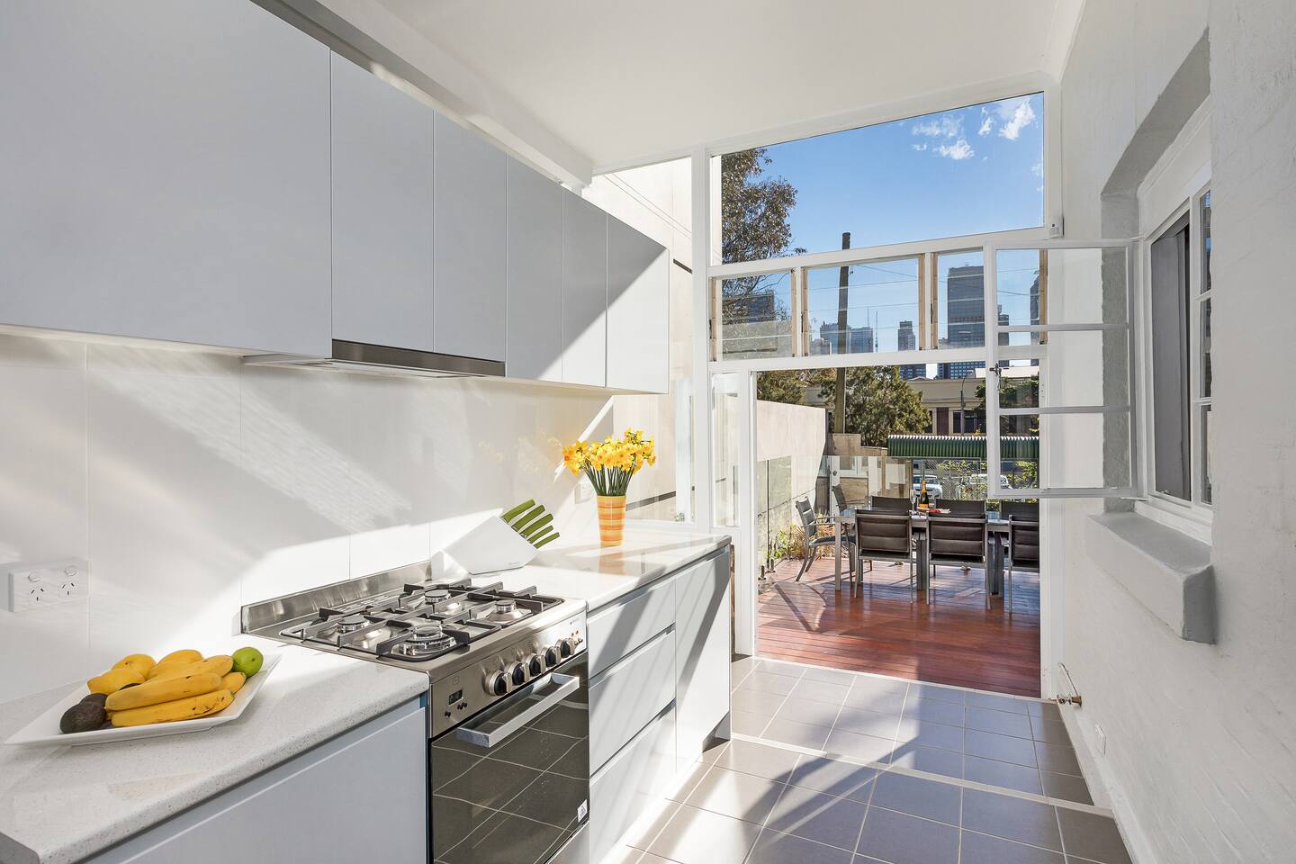 This 2 bedroom ground floor Victorian terrace has everything you need for your stay in Sydney. Ideally suited for singles and couples. The separately spaced bedrooms, lounge, indoor and outdoor dining areas comfortably accommodates 4 adults. Everything is brand new. Recently renovated to the highest standards, ensuring you can enjoy the Victorian architecture with all modern conveniences. Occupying the entire ground floor of this oversized Victorian terrace (151 sq m internal/ 208 sq m total) enables you to enjoy: • Formal lounge, with 3 m ceilings, polished floors & designer furniture • Open plan kitchen and dining area, with all amenities • Enormous 25 sq m timbered terrace balcony, with laundry, overlooking the city • 2 sizable bedrooms, one with a King and the other with Queen sized premium beds, each with substantial built in wardrobes • Central bathroom and separate toilet • Landscaped backyard, with room for up to 2 cars and remote control access • High speed Wi-Fi with unlimited downloads throughout entire terrace • Streaming video via Apple TV with Netflix, Stan and You Tube- latest television and movies. The train stations that either connects you to the airport (Museum station via the city loop) or takes you to Bondi (Kings Cross station) are just a stroll down the road. We love our Darlinghurst terrace, situated in the heart of Sydney. We hope you love it too!