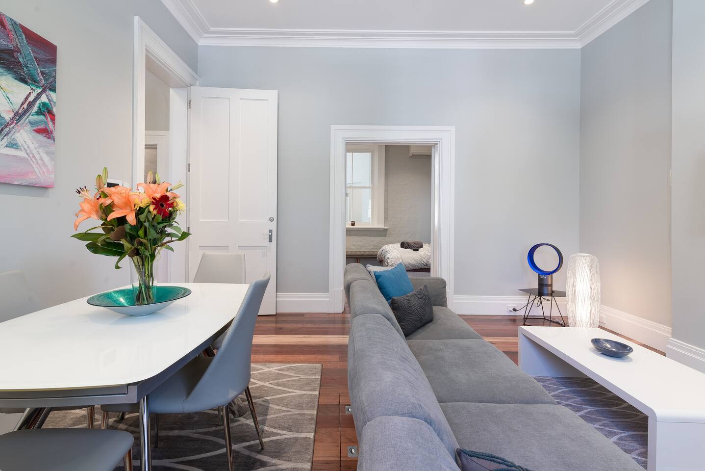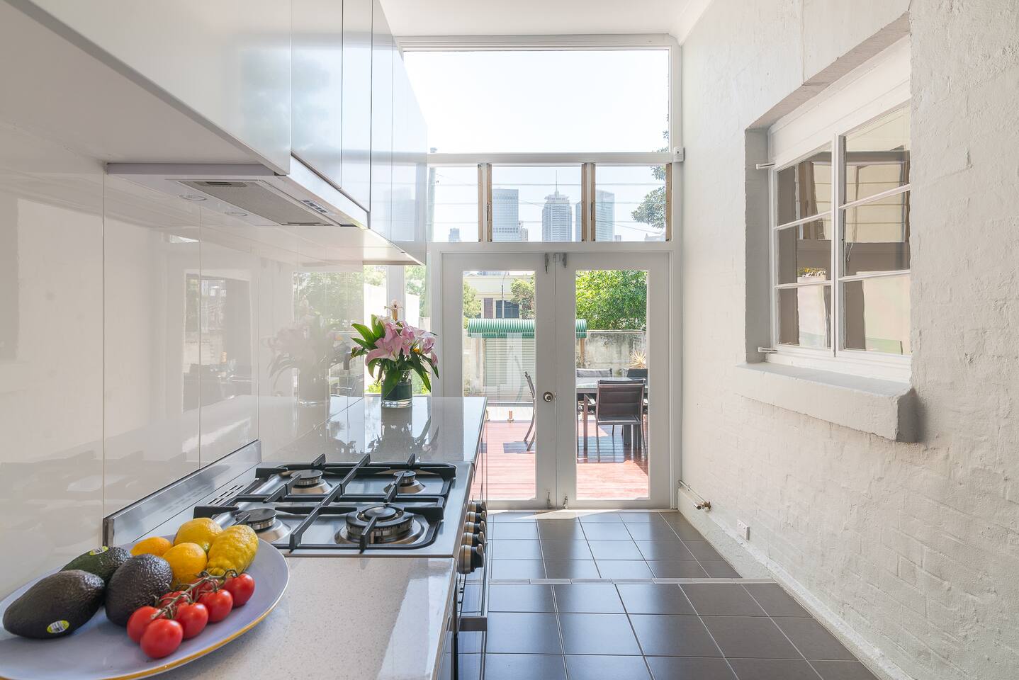 5 Things Guests Love: • Location- Easy walk to the city and harbour through Hyde Park or Botanic Gardens; • Back Balcony Views- Relax upon the massive outdoor terrace balcony with private uninterrupted city views; • Period Charm With Modern Conveniences- Enjoy the entire ground floor of a renovated terrace that boasts light-filled rooms with high ceilings; • Space- Unwind with separate bedrooms, living and outdoor areas, ideal for 2 couples; • Quiet- Double bricked terrace in a quiet street.